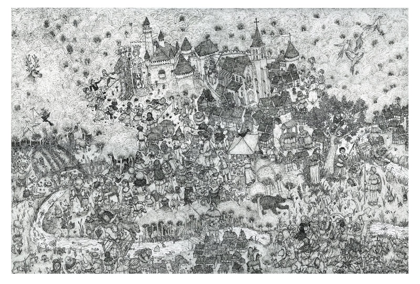- Technique : Plume et encre de Chine sur papier